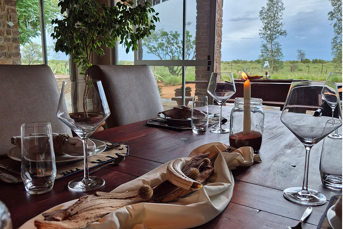 Auch für Ihr leibliches Wohl wird auf unserer Farm ausreichend gesorgt. Wir bieten eine leckere und abwechslungsreiche deutsche Küche mit namibischen Wildspezialitäten, aber auch heimische Speisen, um ihren Gaumen zu verwöhnen. Dazu reichen wir gute südafrikanische Weine.